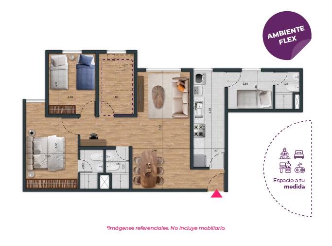 2 Dormitorios + Ambiente Flex | 2 Baños